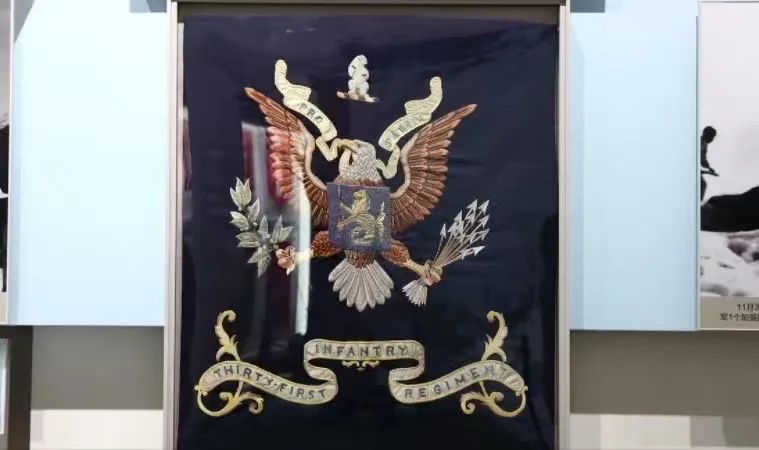 这是陈列在军博的美军“北极熊团团旗”。《跨过鸭绿江》真实还原了长津湖战役中,志愿军全歼美北极熊团并缴获其团旗的全过程。