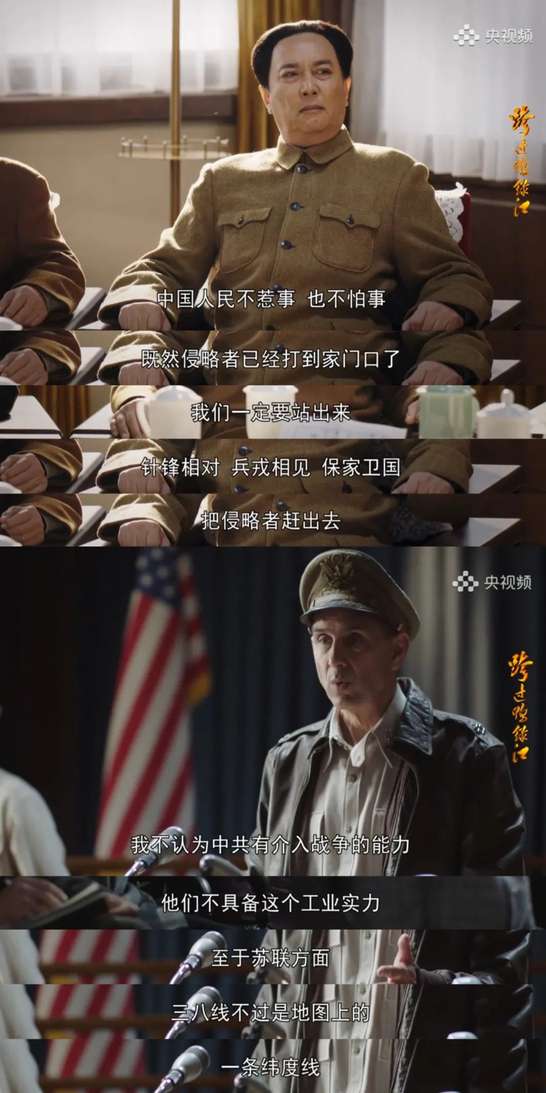 电视剧《跨过鸭绿江》一开篇,就通过剧情演绎及真实的历史影像,讲清楚抗美援朝战争的来龙去脉。