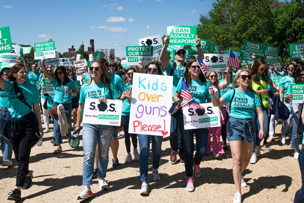 4月17日,人们在美国首都华盛顿参加控枪游行,呼吁禁止销售攻击性武器,应对美国枪支暴力问题。新华社发(亚伦摄)