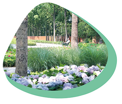 上海市曹家渡花园内,绿化景观富有层次。 上海静安园林绿化发展有限公司提供