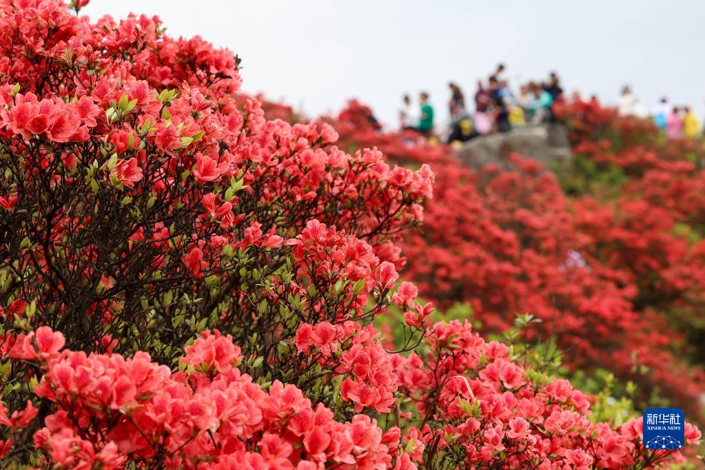 5月1日,游客在贵州省黔东南苗族侗族自治州丹寨县龙泉山景区赏花游玩。新华社发(杨胜贤 摄)