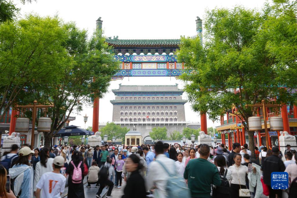 5月1日,游客在北京前门大街参观游览。新华社记者 鞠焕宗 摄