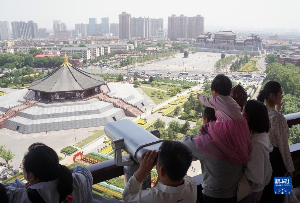 5月1日,游客在河南洛阳隋唐洛阳城国家遗址公园游览。新华社记者 侯俊 摄