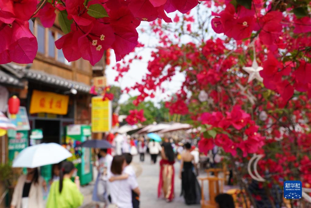 4月30日,人们在四川省凉山彝族自治州西昌市建昌古城游览。新华社发(李结义 摄)