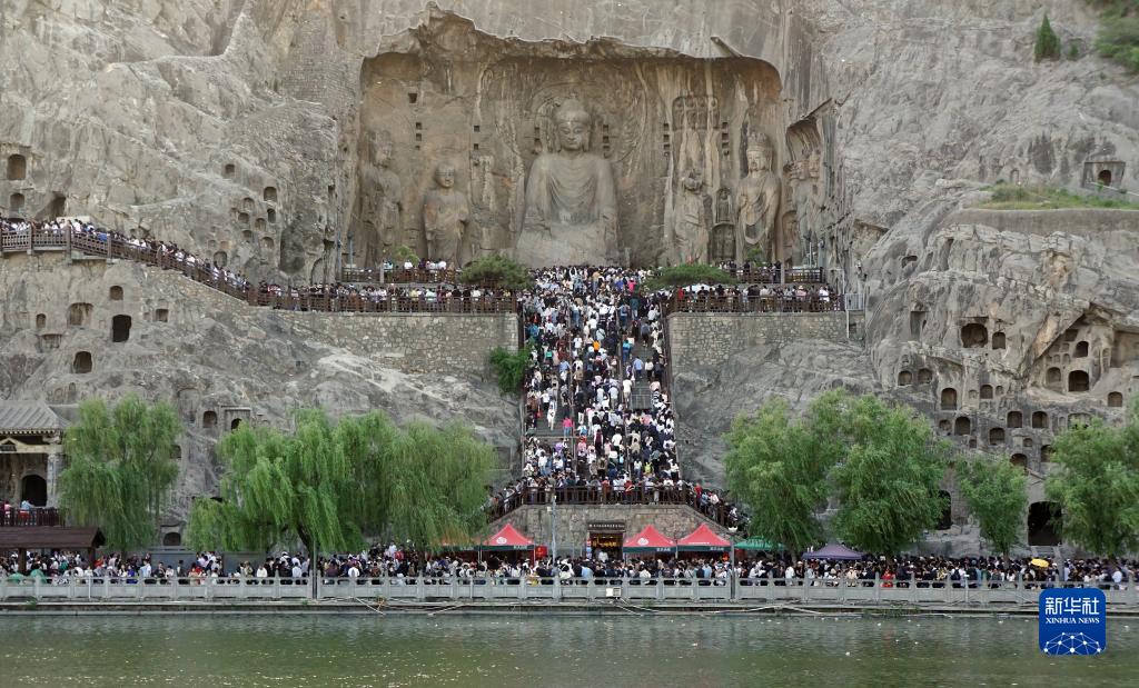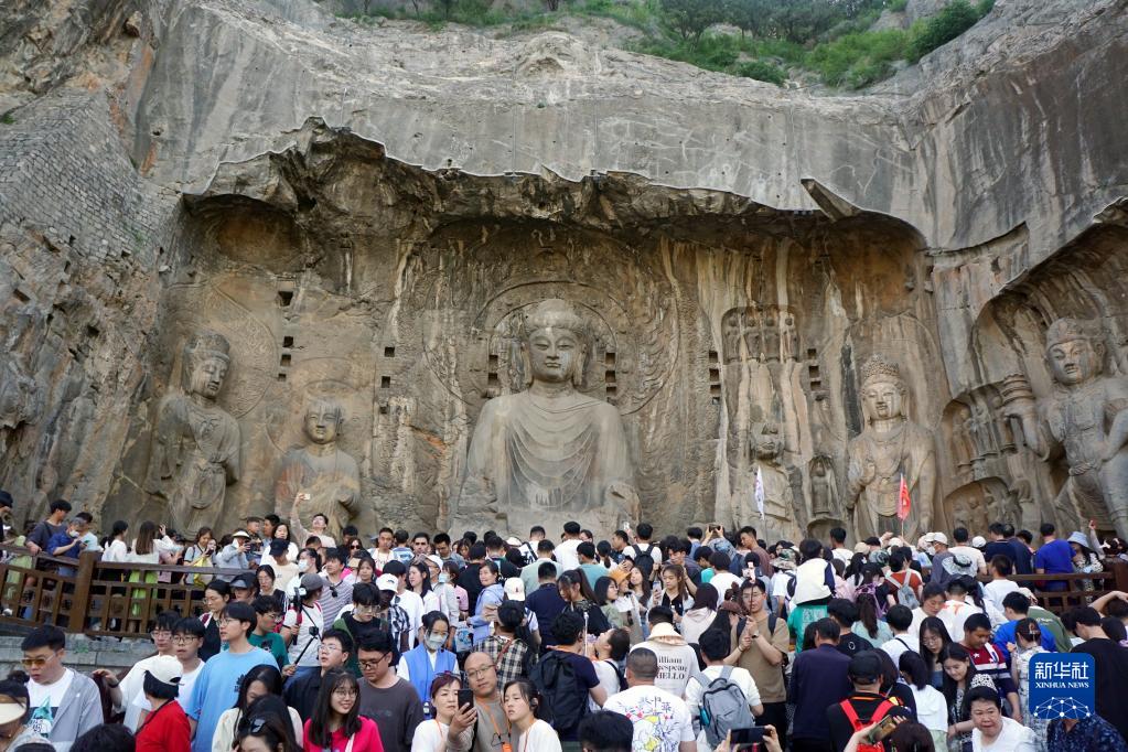 4月30日,游客在河南洛阳龙门石窟景区游览。新华社记者 侯俊 摄