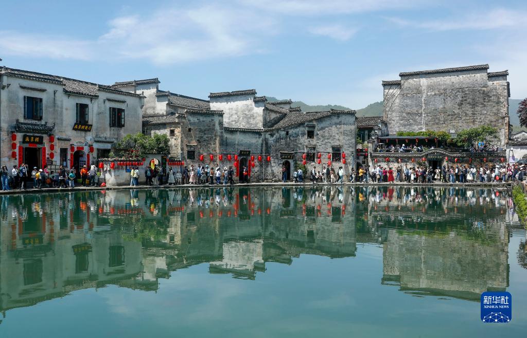 4月30日,游客在安徽省黄山市黟县宏村参观游玩。新华社发(施亚磊 摄)