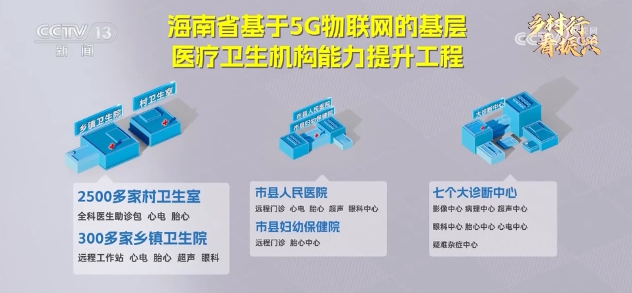 如今,在海南省已经有2500多家村卫生室、300多家乡镇卫生院实现5G远程问诊。对于疑难杂症,还可以通过网络传送到省内7家大医院的诊断中心进行诊断。