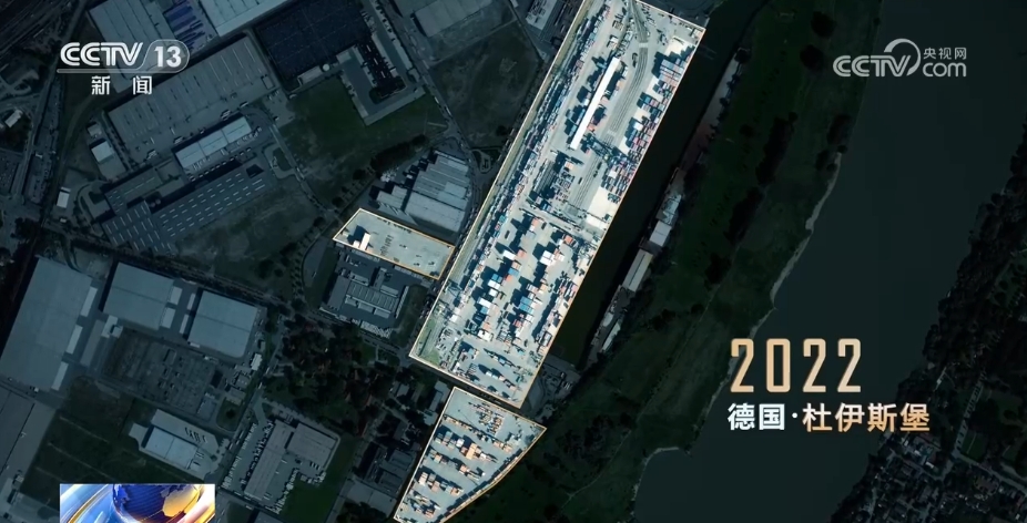 在空中可以更加清晰地观察这种变化。这是10年前,中欧班列在杜伊斯堡最大的货运场站。而今,集装箱增加了不止一倍,曾经的空草坪变成了2万平方米的新货场。