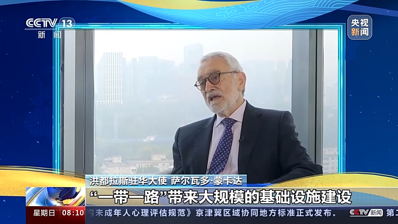 洪都拉斯驻华大使 萨尔瓦多·蒙卡达:我认为共建“一带一路”倡议,特别是涉及到和全球南方国家的相关合作,会使它们提高生产力,促进它们的发展。我认为,洪都拉斯的基础设施建设项目未来作为共建“一带一路”倡议的一部分,会促进中美洲的互联互通,虽然目前只占世界的一小部分,但是未来具有很大潜力。