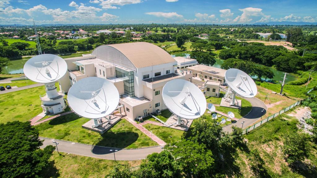 老挝首都万象的老挝一号通信卫星地面站全景(2016年8月1日摄)。新华社发(刘艾伦摄)