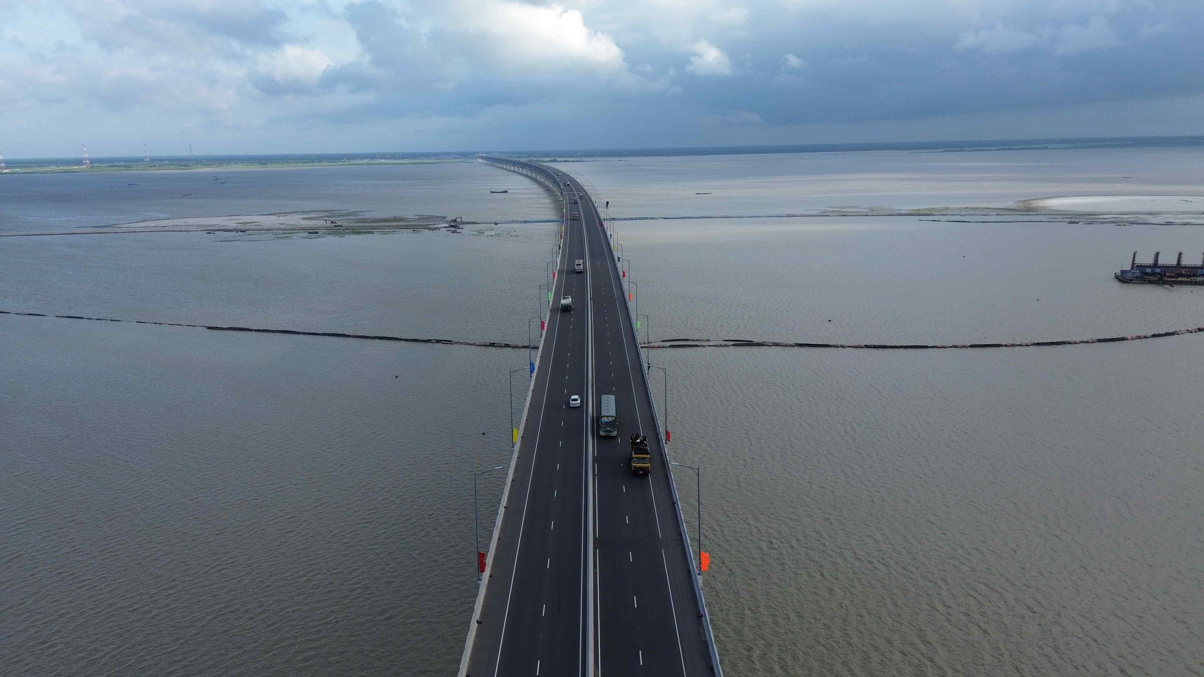 △2023年6月25日,位于孟加拉国首都达卡西南约40公里处的帕德玛大桥。中企承建的孟加拉国最大桥梁项目——帕德玛大桥,是连接中国及“泛亚铁路”的重要通道之一。