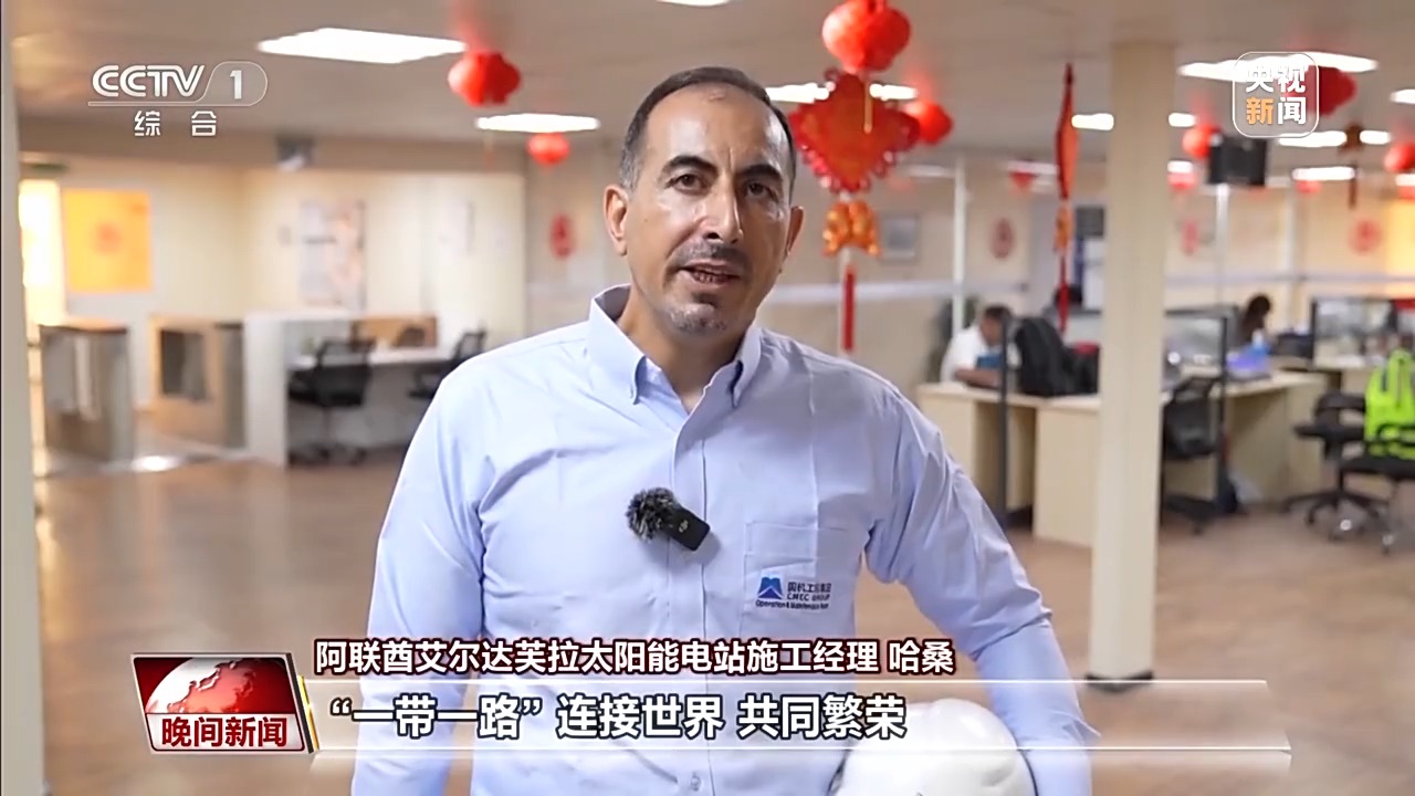 阿联酋艾尔达芙拉太阳能电站施工经理 哈桑:“一带一路”连接世界,共同繁荣。
