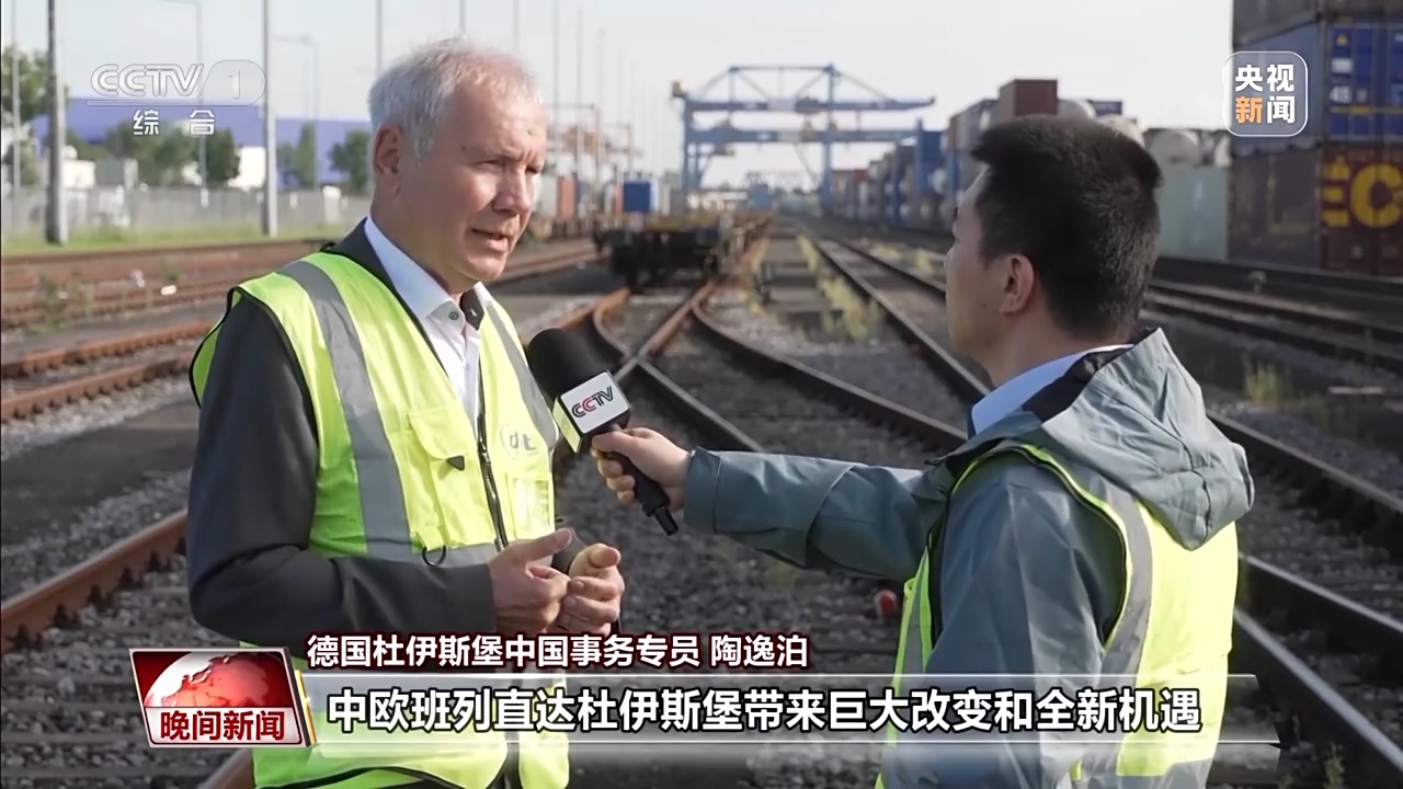 德国杜伊斯堡中国事务专员 陶逸泊:中欧班列直达杜伊斯堡带来巨大改变和全新机遇。这条线路绵延上万公里,从中国出发穿越6个国家,抵达我们这里。一切工作能在十几天内完成,非常了不起。
