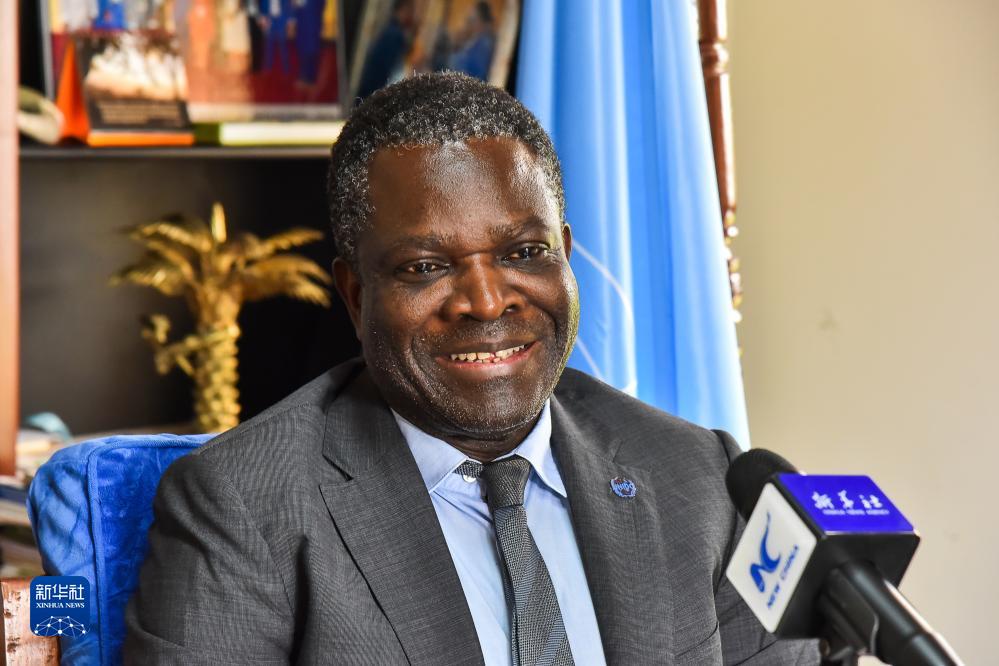10月13日,联合国工业发展组织中部非洲区域代表雷蒙德·塔瓦雷斯在喀麦隆首都雅温得接受新华社记者采访。新华社发(科普索摄)