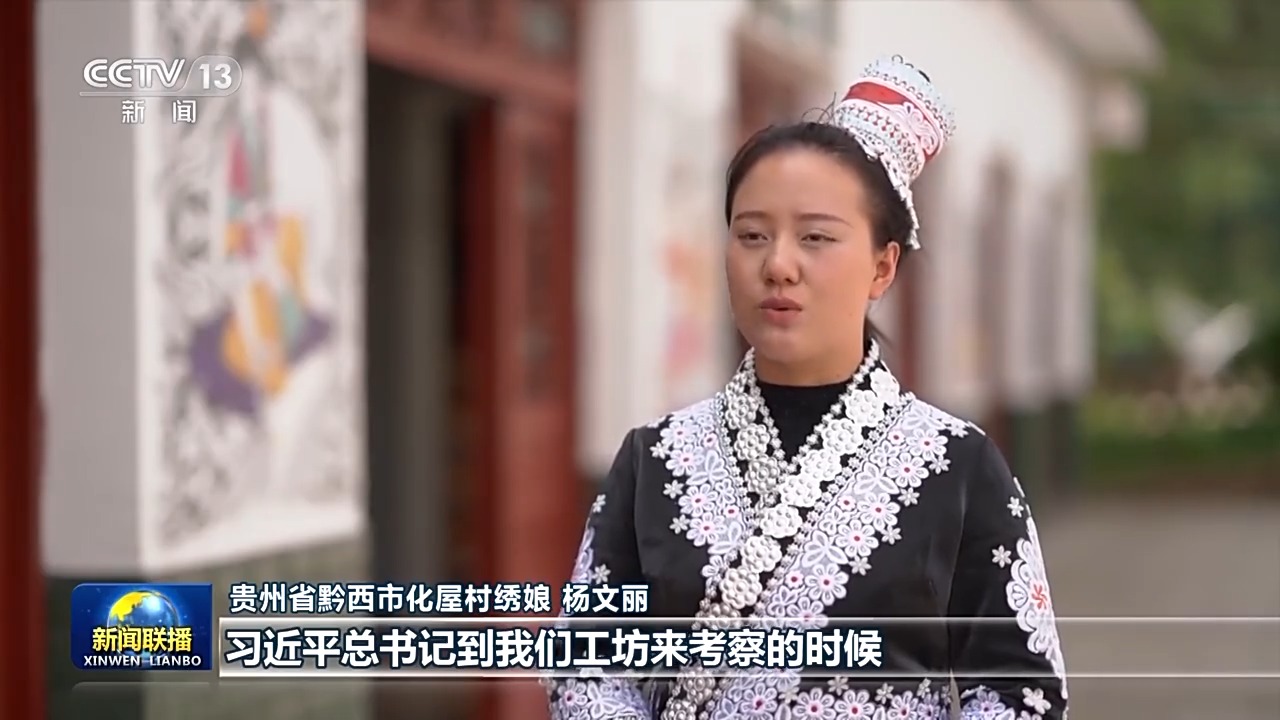 贵州省黔西市化屋村绣娘 杨文丽:习近平总书记到我们工坊来考察的时候,嘱咐我们要把苗绣传承好,发展好,推动乡村振兴。这也为我们发展好苗绣产业打开了一个新思路。
