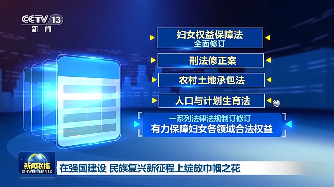 新时代,维护妇女权益,法治保障坚实有力。首部民法典颁行,首部家庭教育促进法实施,妇女权益保障法全面修订,刑法修正案、农村土地承包法、人口与计划生育法等一系列法律法规制订修订,有力保障妇女各领域合法权益。