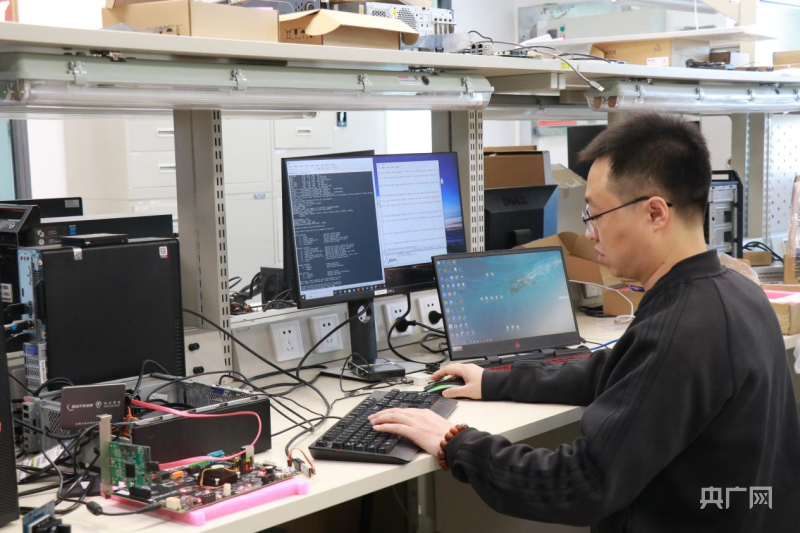 飞腾工作人员正在进行新款CPU的相关调试(央广网记者 周思杨 摄)