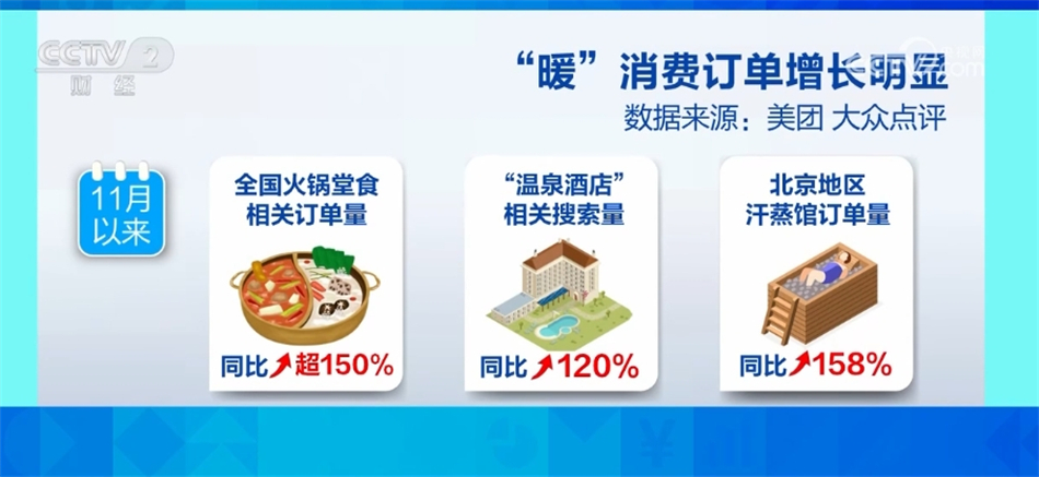 除了御寒用品热销外,火锅店、汗蒸馆、温泉等场所也迎来了消费热潮,继续来看记者的探访。