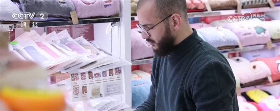 在浙江义乌国际商贸城一家主营暖手袋的店铺里,来自约旦的采购商弗阿德正在采购一批插电的暖手袋。这些均价10元—20元的产品在中东市场非常受欢迎。