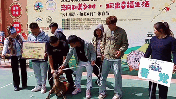当主持人牵着“奖品”走进赛场