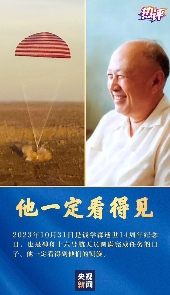 “神十六凯旋他一定看得见”,这是网友的留言。今天是中国航天事业奠基人、“两弹一星”元勋钱学森逝世14周年纪念日。他曾经这样发问:“外国人能搞的,难道中国人不能搞?”如今,这样的问题早已有了答案。从无到有,由大向强,建设航天强国要靠一代代人接续奋斗。创新,从未止步。中国人探索太空的脚步会迈得更大、更远。