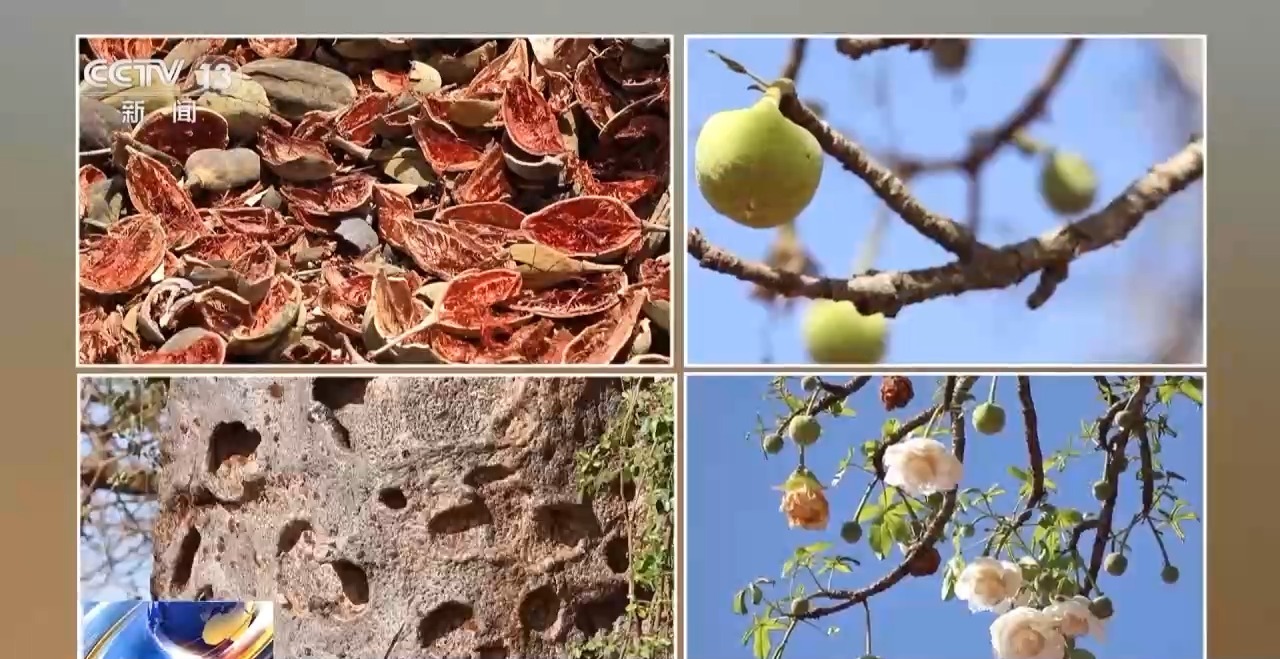 总台记者 刘晨:为什么说猴面包树全身都是宝,可别小看这个只有10克的一颗果实,它从内到外能生产出四种不同的产品。猴面包树的果肉压成粉末状可以泡水喝,富含维生素和矿物质。去除果肉之后,里面的种子晒干后可以用来萃取精油,用在洗发水、面霜等护肤品里使用。萃取精油后的种子还是非常好的喂养马匹的饲料。而最后剩下的猴面包树果壳,在碾碎成粉末后成为种花的营养土,比传统的土壤更洁净且富有营养。