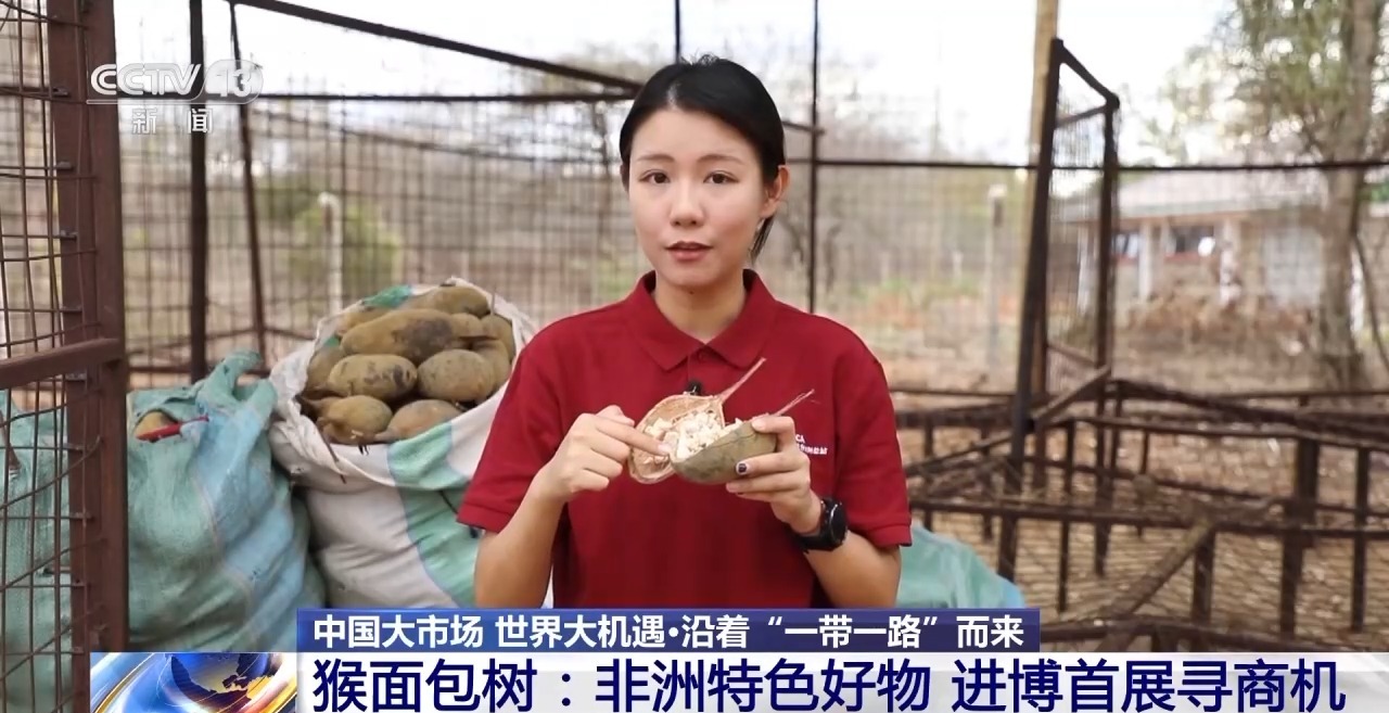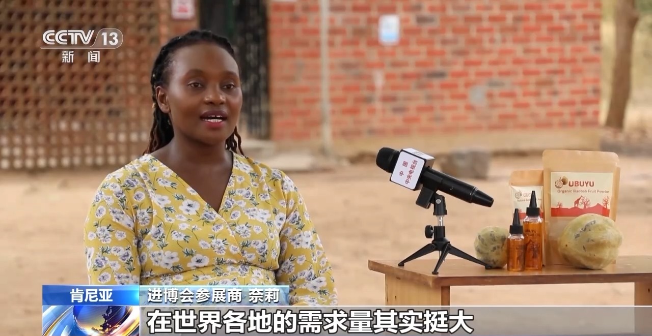 进博会参展商奈莉:我们在2018年创办了这家公司,我们了解到这种非洲特色产品在世界各地的需求量其实挺大,所以我们现在从肯尼亚马奎尼县1000多名农户那里采购猴面包树果实,然后将它们加工成猴面包树果粉和猴面包树油。
