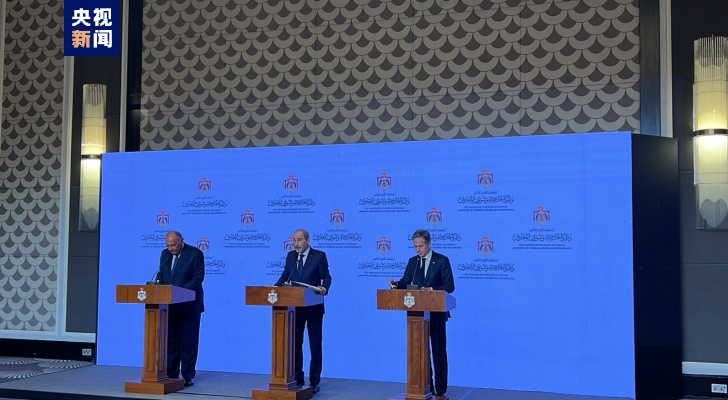 △萨法迪、布林肯、舒克里在安曼召开联合记者会