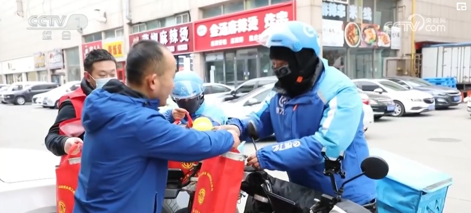 “冬日暖心”行动小分队队员们,穿梭于物流公司和外卖小哥驿站,为货车司机和外卖员送去方便面等生活用品。环卫工人这两天扫雪工作量大,很难按时吃上早餐,志愿者们便早早来到城区的街道,将一份份冒着热气的包子和粥送到环卫工手中。