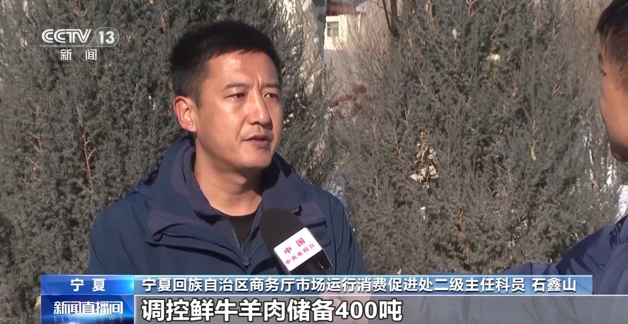 宁夏商务厅市场运行消费促进处二级主任科员 石鑫山:自治区现有冻猪肉储备340吨,调控鲜牛羊肉储备400吨,随时可以根据市场需求进行投放。6家大型批发市场和8家大重点零售企业,现库存蔬菜8205吨,能够满足全区人民7天的蔬菜消耗量,生活必需品也量足、价稳,能够满足全区人民的基本需求。