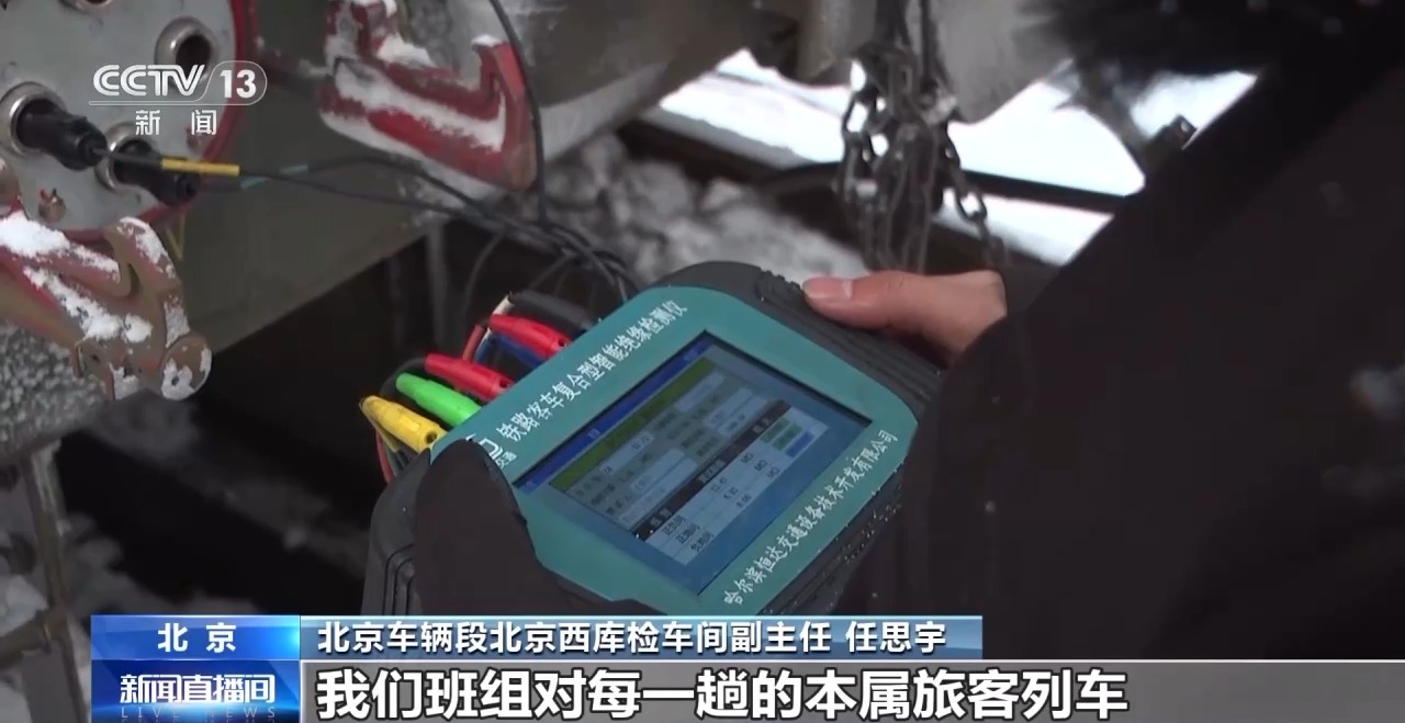 北京车辆段北京西库检车间副主任 任思宇:在这种(大雪)天气,我们班组对每一趟的列车检修作业时间,从之前的两小时左右,增加到三至四个小时。经常是这列车还没有作业完毕,新的车又进来了,等于说连轴转。
