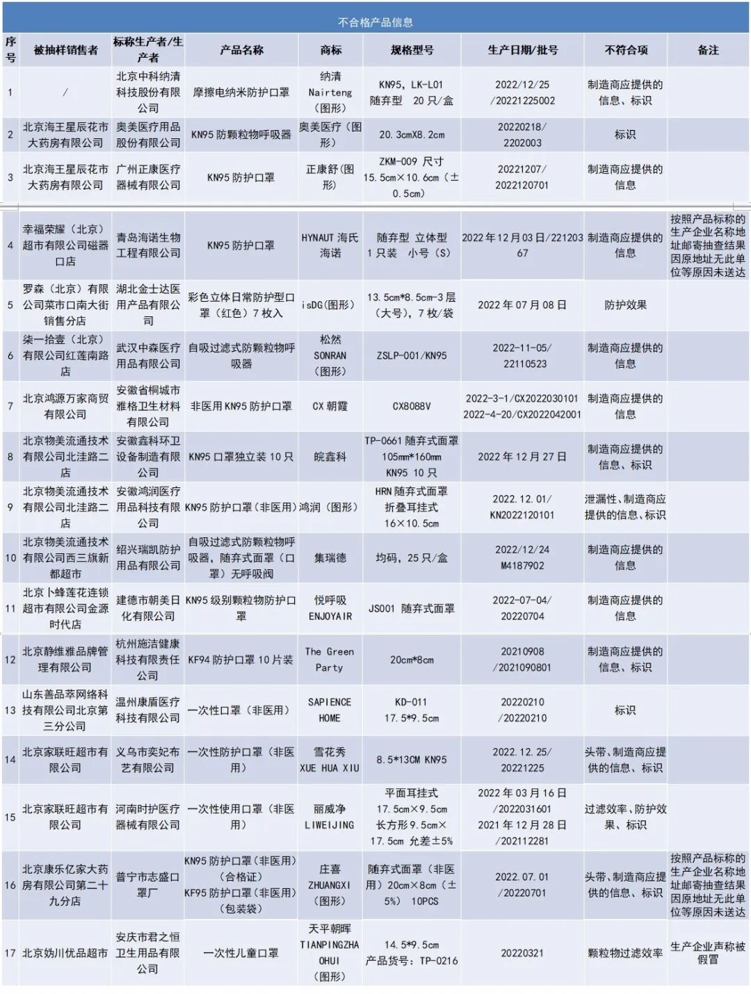 12月18日,北京市市场监管局通告非医用口罩产品质量监督抽查结果,在70组批样品中,检出17组批样品质量不符合相关标准。