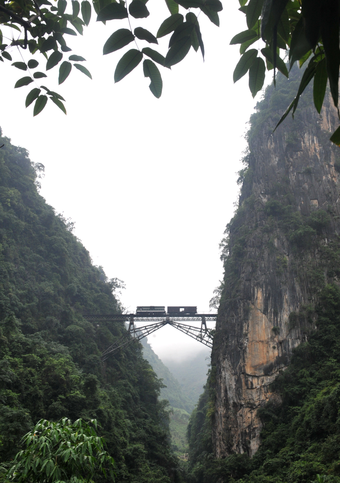 这是行驶在滇越铁路云南省屏边县境内的货运列车(2012年3月9日摄)。