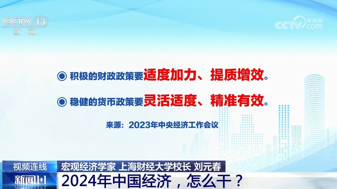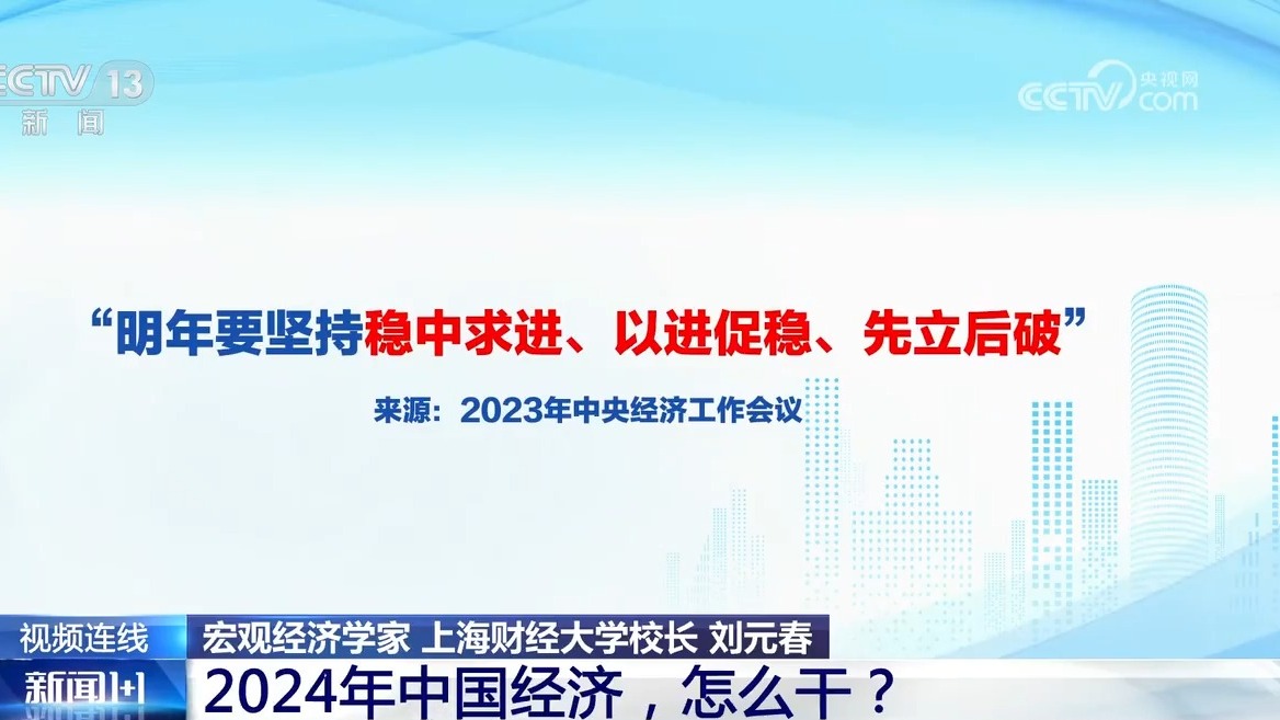 《新闻1+1》今晚连线宏观经济学家、上海财经大学校长刘元春,共同关注:2024年中国经济,怎么干?