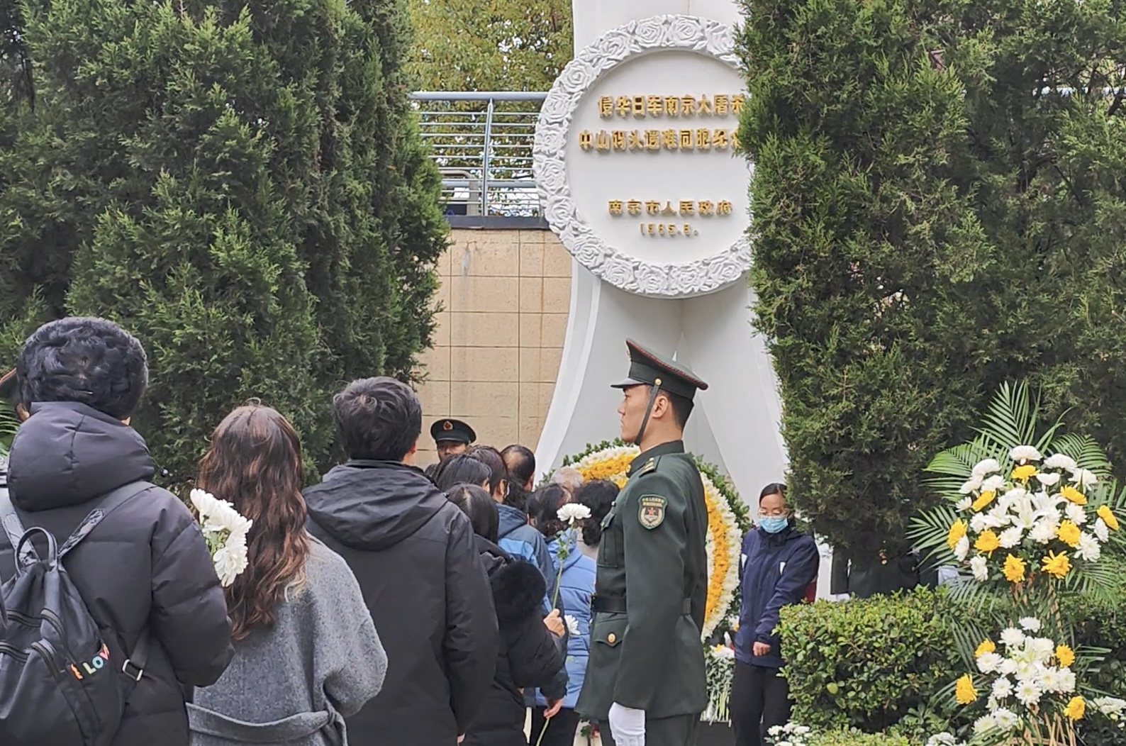 12月13日,南京各界群众在中山码头丛葬地参加悼念活动。新华社记者刘宇轩 摄
