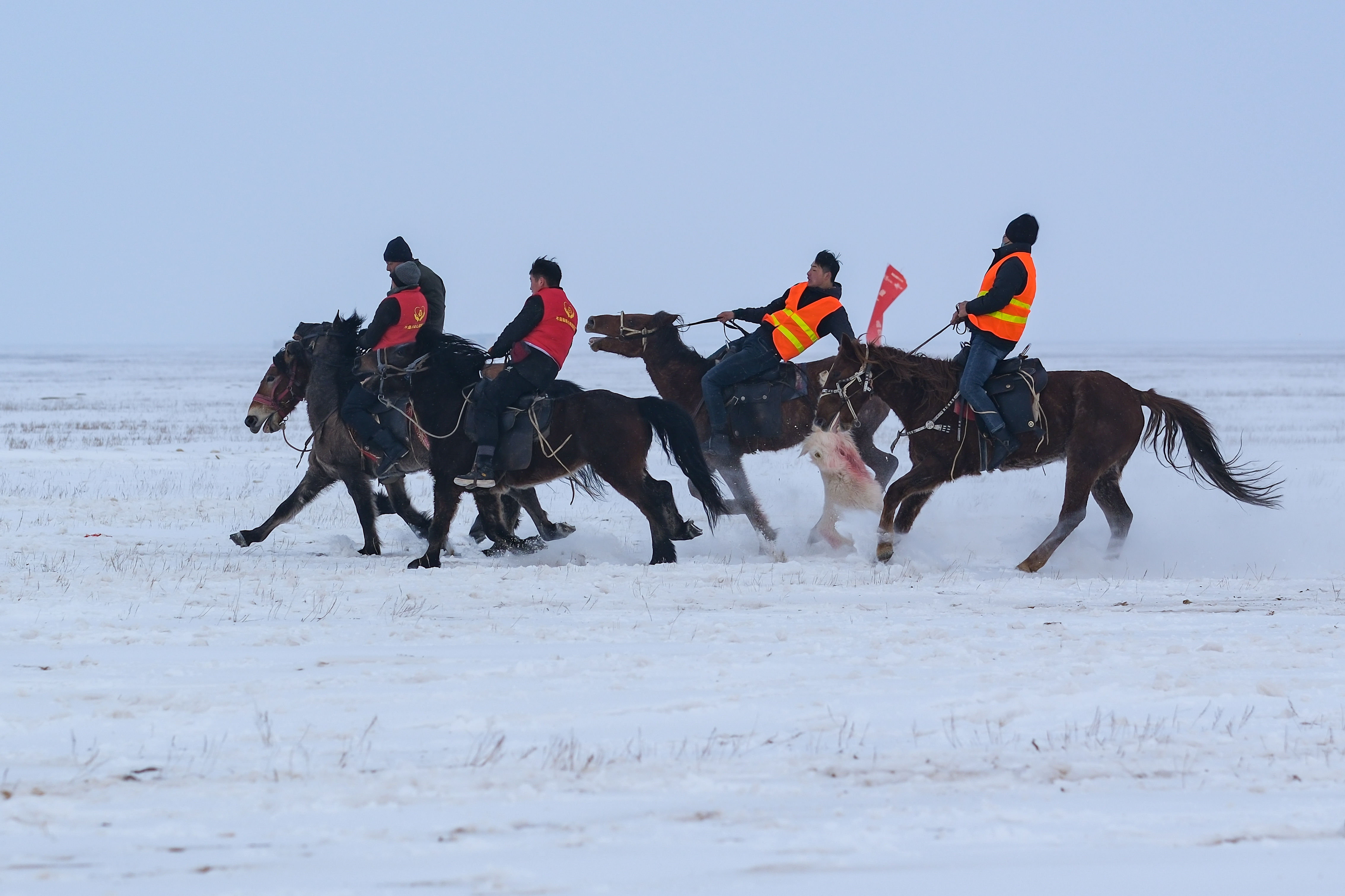12月21日,牧民在“冬宰节”上表演叼羊。新华社记者 张铖 摄