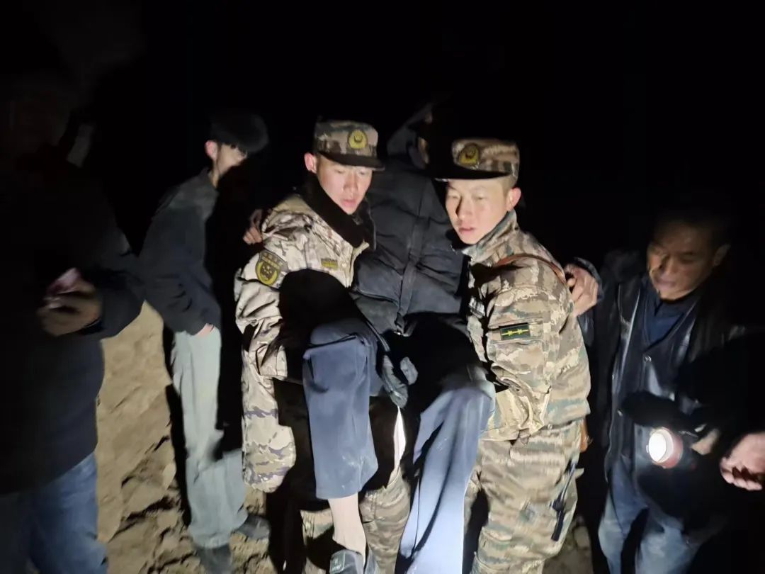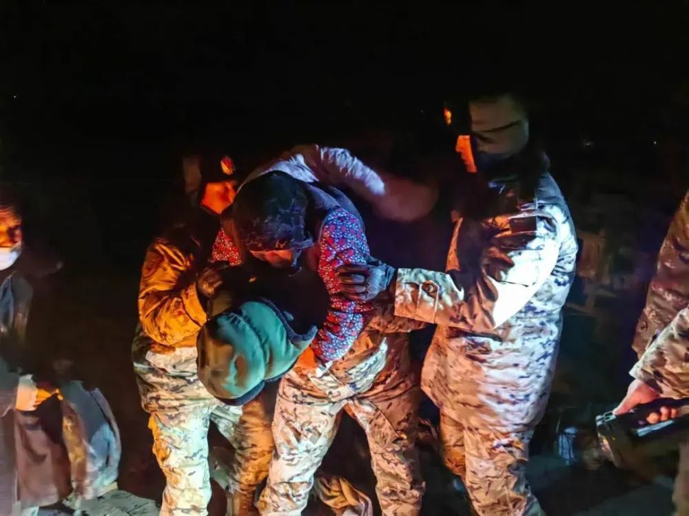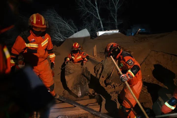 12月19日,在青海省海东市民和回族土族自治县中川乡草滩村,海东市消防救援支队队员在搜救。新华社记者 张宏祥 摄