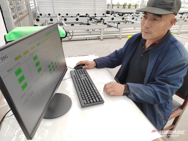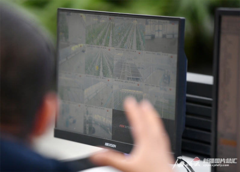 12月19日,工作人员在位于昌吉国家农业高新技术产业示范区新疆农业博览园的未来农业科技馆内通过智慧系统管护蔬菜。石榴云/新疆日报记者 邹懿摄