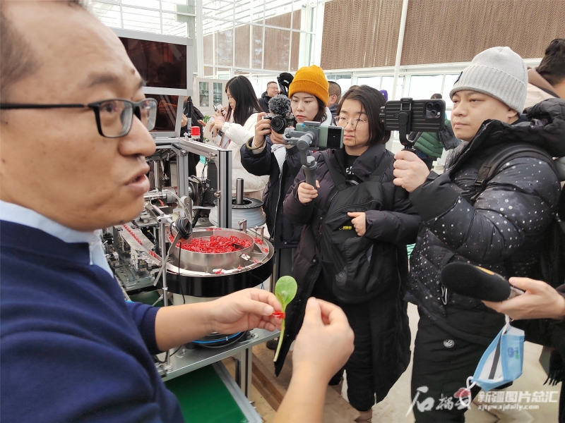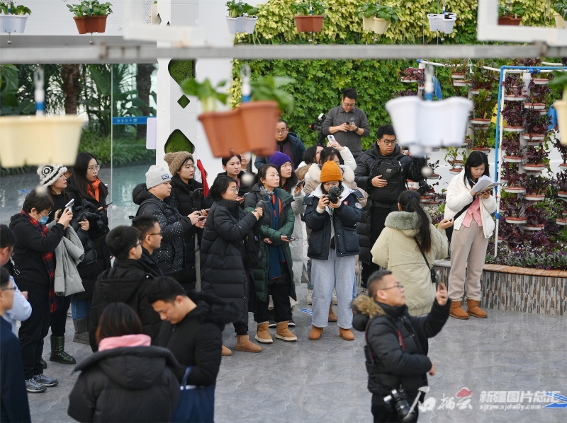 12月19日,“四季看新疆”之“追着雪花看新疆”主题采访活动全媒体报道团队走进昌吉国家农业高新技术产业示范区新疆农业博览园。