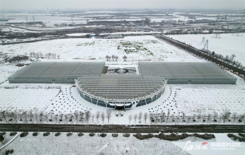 12月19日,鸟瞰位于昌吉国家农业高新技术产业示范区新疆农业博览园的未来农业科技馆(无人机摄)。石榴云/新疆日报记者 邹懿摄