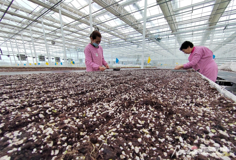 12月19日,工作人员在位于昌吉国家农业高新技术产业示范区新疆农业博览园的未来农业科技馆叶菜种植工厂育苗。石榴云/新疆日报记者 邹懿摄