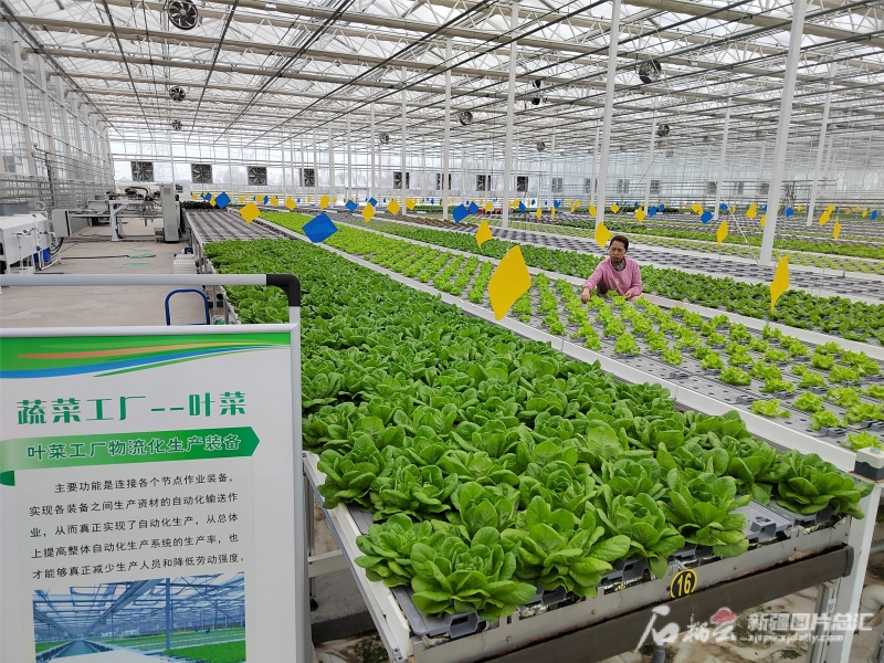 12月19日,工作人员在位于昌吉国家农业高新技术产业示范区新疆农业博览园的未来农业科技馆叶菜种植工厂管护蔬菜。