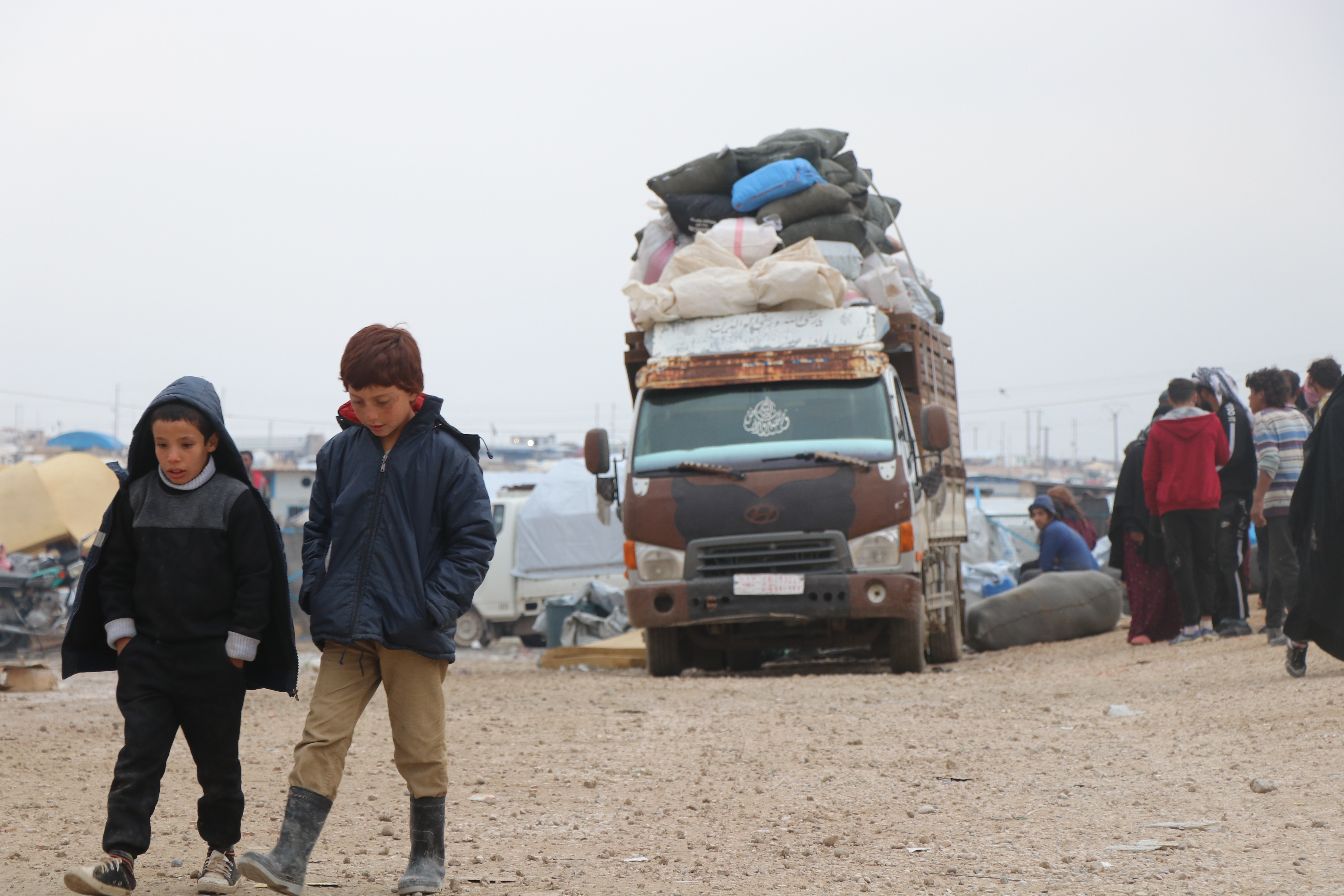 2020年11月16日,部分民众准备离开叙利亚东北部哈塞克省霍尔难民营。新华社发