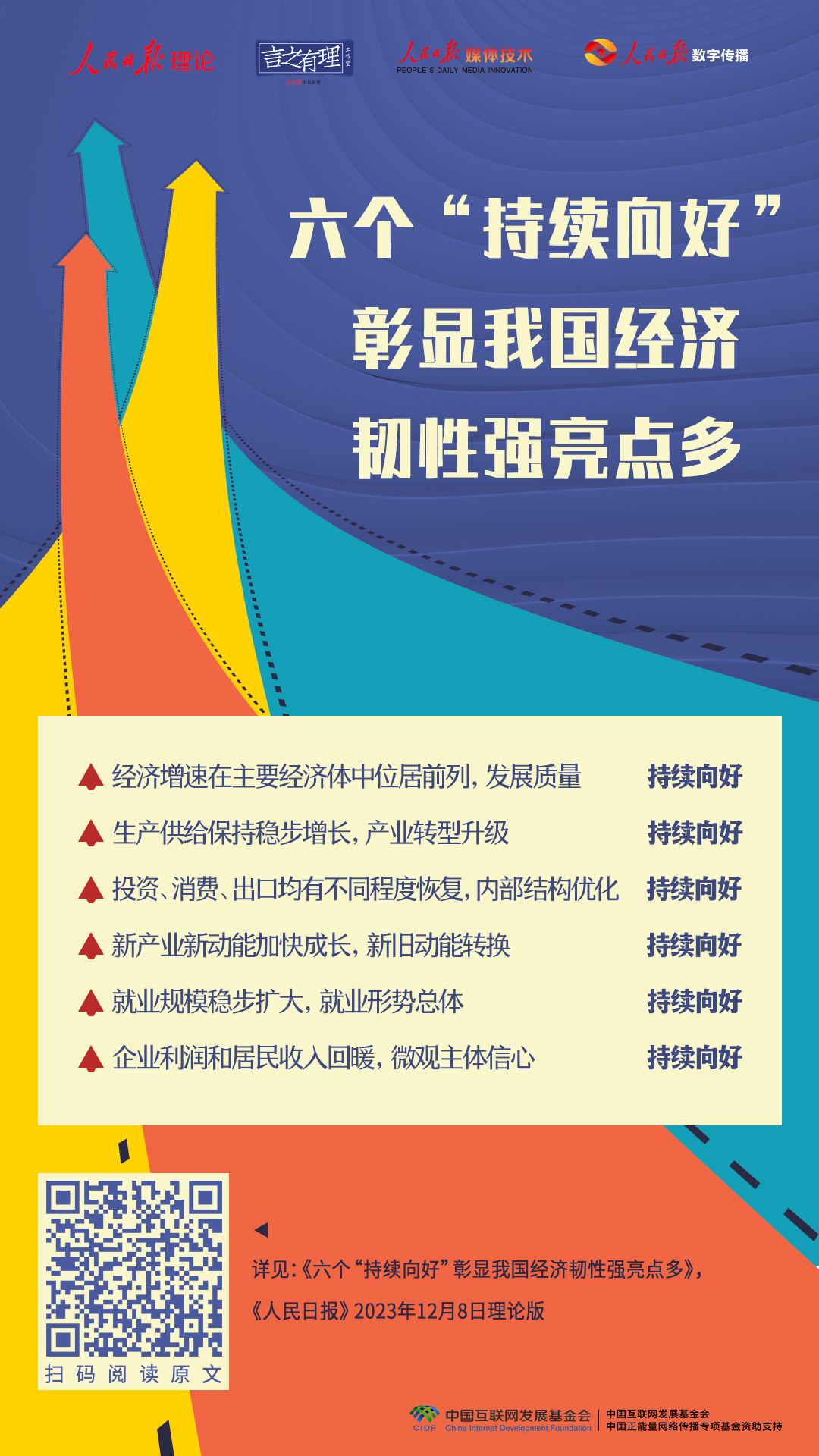 今年是全面贯彻落实党的二十大精神开局之年。面对复杂严峻的国际环境和艰巨繁重的国内改革发展稳定任务,在以习近平同志为核心的党中央坚强领导下,各地区各部门更好统筹国内国际两个大局,更好统筹疫情防控和经济社会发展,更好统筹发展和安全,我国国民经济持续恢复、总体回升向好,高质量发展扎实推进,产业升级厚积薄发,粮食能源安全得到有效保障,社会大局保持稳定。特别是三季度以来,随着宏观调控政策一系列“组合拳”发力显效,主要经济指标企稳回升,经济运行中的积极因素积累增多,在六个方面呈现持续向好的发展态势,彰显了我国经济韧性强、亮点多,为实现全年经济社会发展目标打下了良好基础。