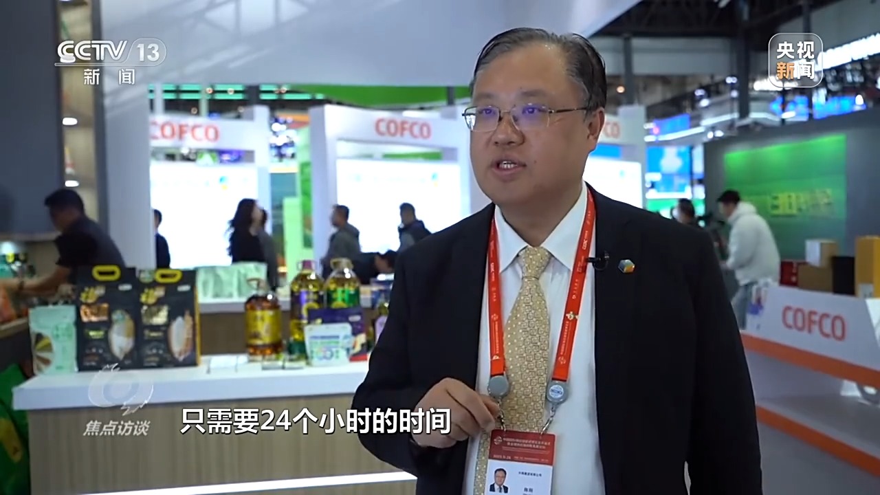 中粮集团对外合作部总监 陈刚:通过全球布局的供应链,把世界粮食收储、加工,通过稳定供应链运送到每一个消费者的餐桌上。我们在全球40个国家有自己产业链的布局,一瓶食用油从原料到达中国的港口,到产品奉献到消费者餐桌上,只需要24个小时的时间。