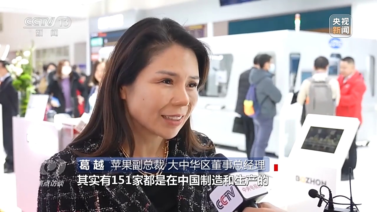 苹果副总裁、大中华区董事总经理 葛越:我们带来的是非常有代表性的几家供应商,我们在全球前200名供应商中,有151家都是在中国制造和生产的,其中智能制造也是重中之重。