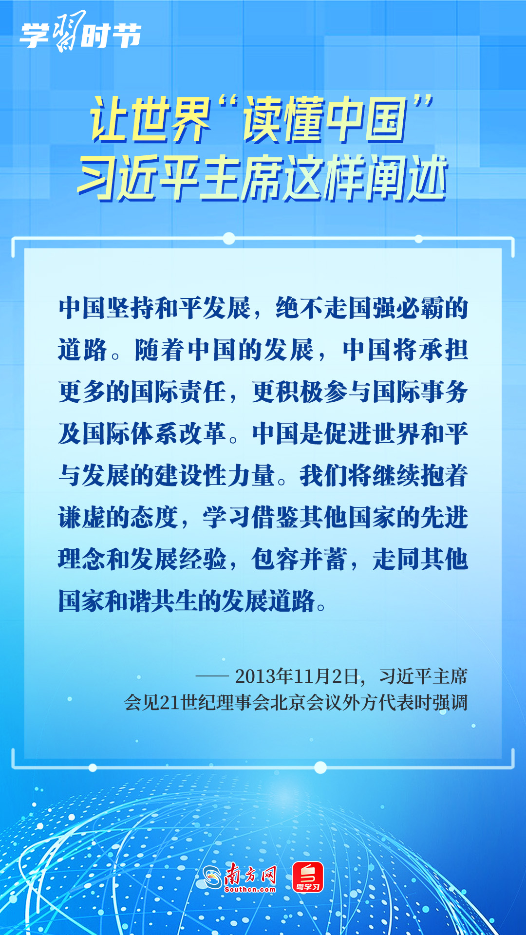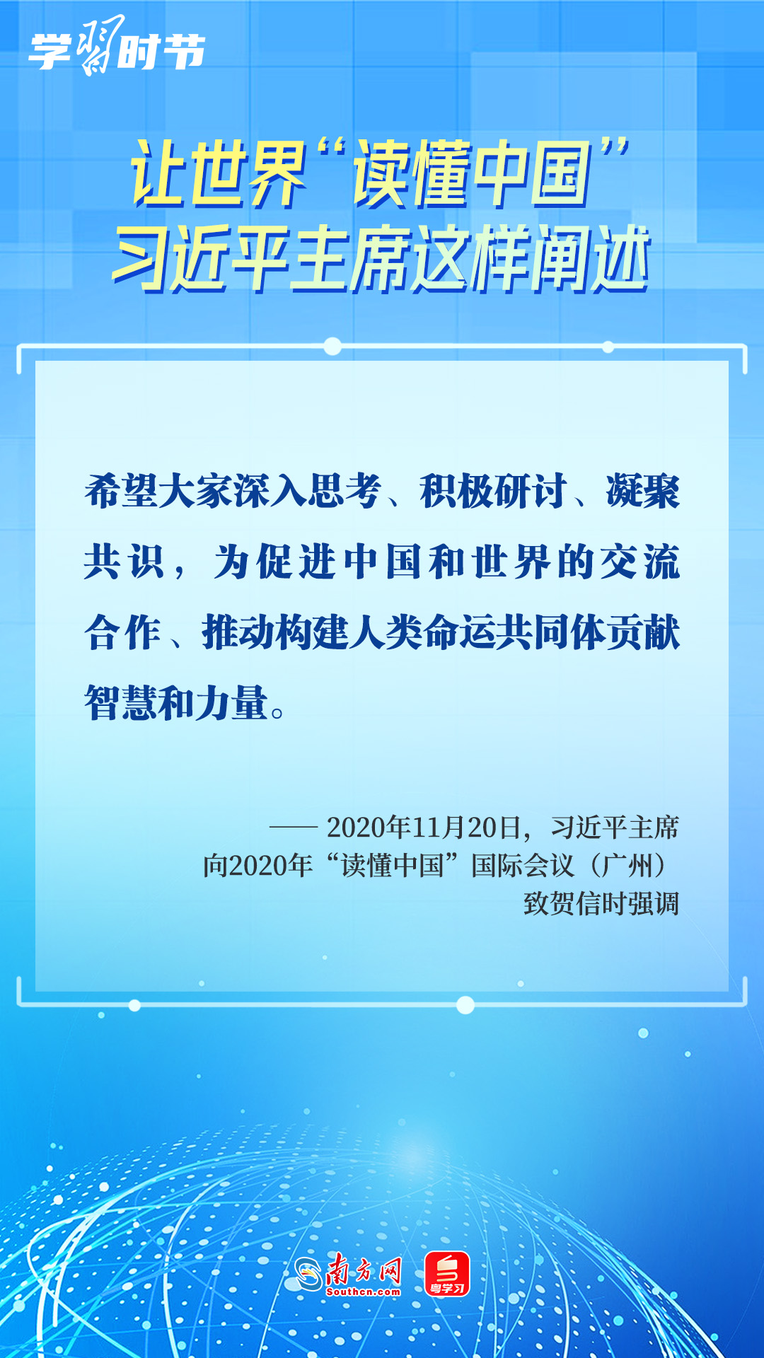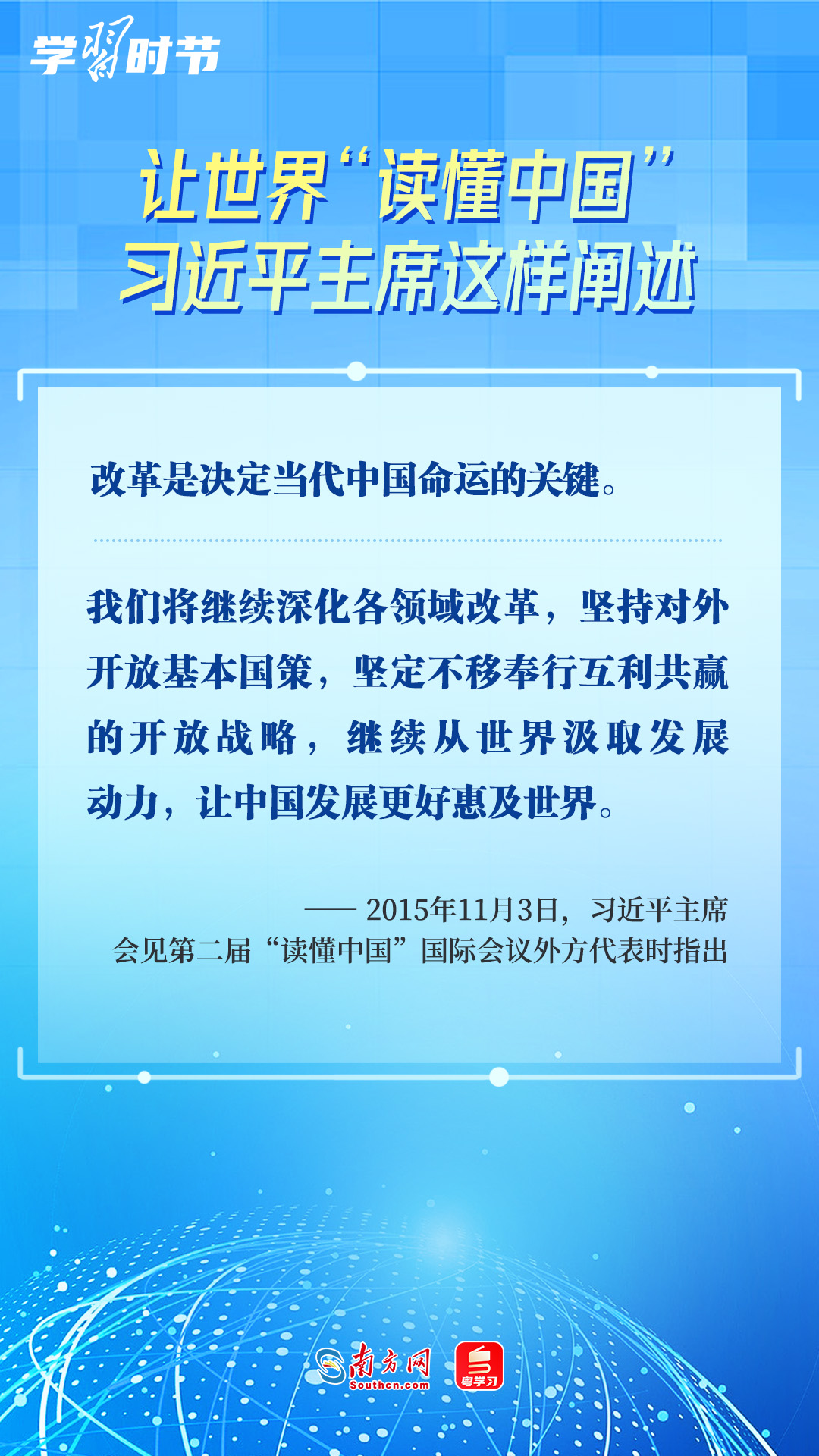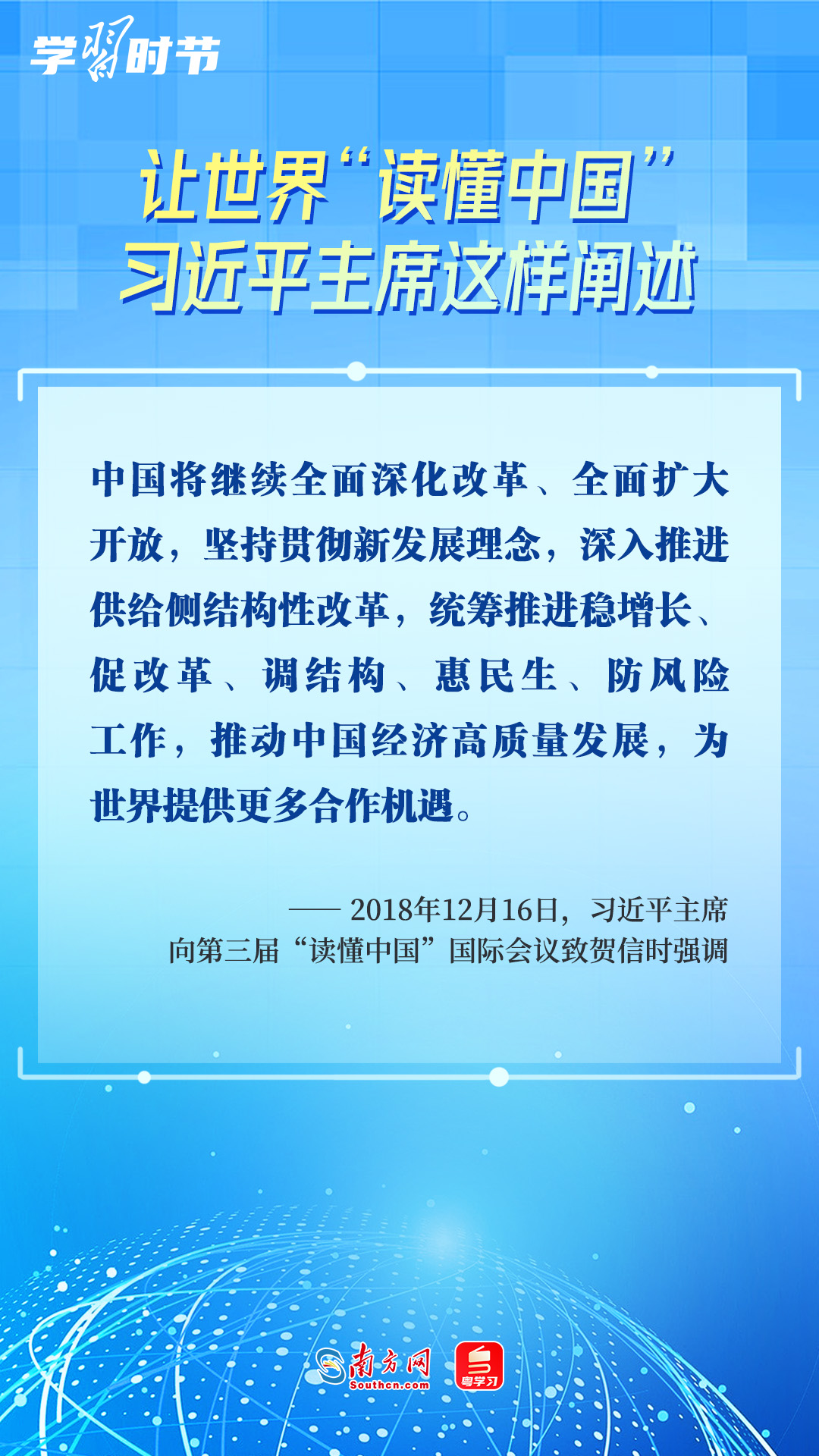 习近平主席高度重视“读懂中国”国际会议,多次会见与会代表、向会议致辞或致贺信,阐述中国的发展道路、改革开放、对外政策等,让我们一同学习。