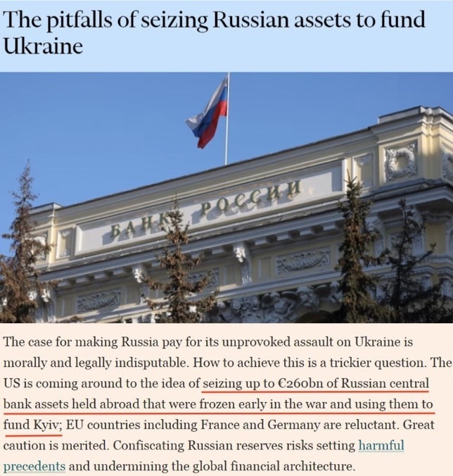 自去年起,在美国主推下,西方一直在讨论为支持乌克兰而动用俄海外资产“应该走多远”。