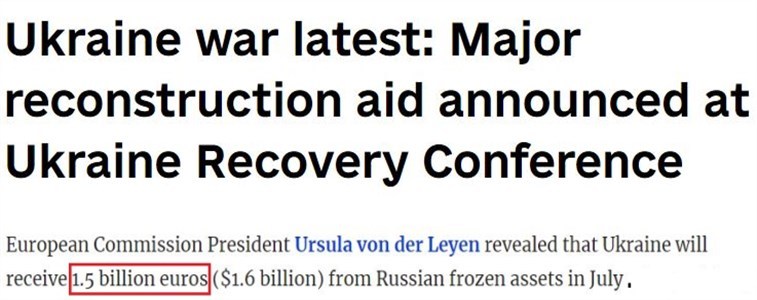 作为会议的一项重要“成果”,乌克兰将从7月开始获得俄罗斯被冻结资产的利息收入,首批为15亿欧元。