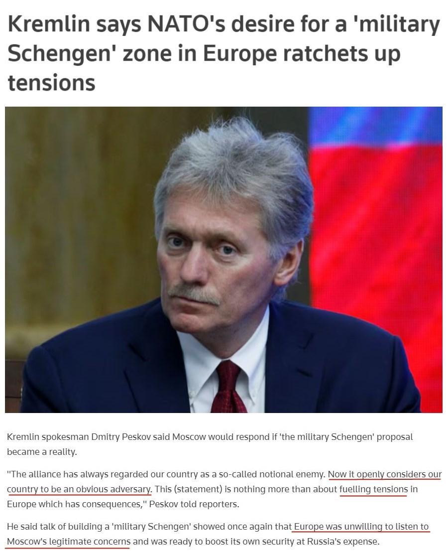 俄罗斯方面早就警告,北约痴迷于打造所谓“军事申根区”再次证明其无意顾及俄方的安全关切,只会加剧欧洲的紧张局势。